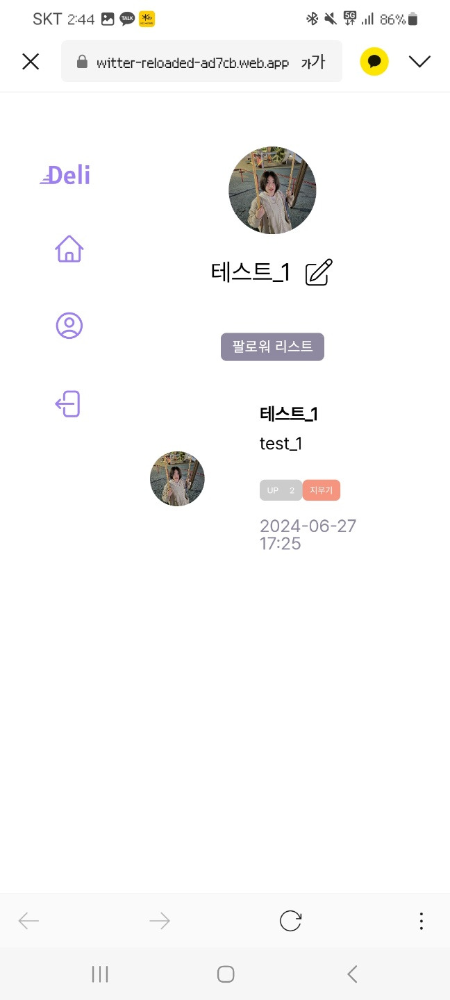 - 서비스명: Deli (트위터 클론)