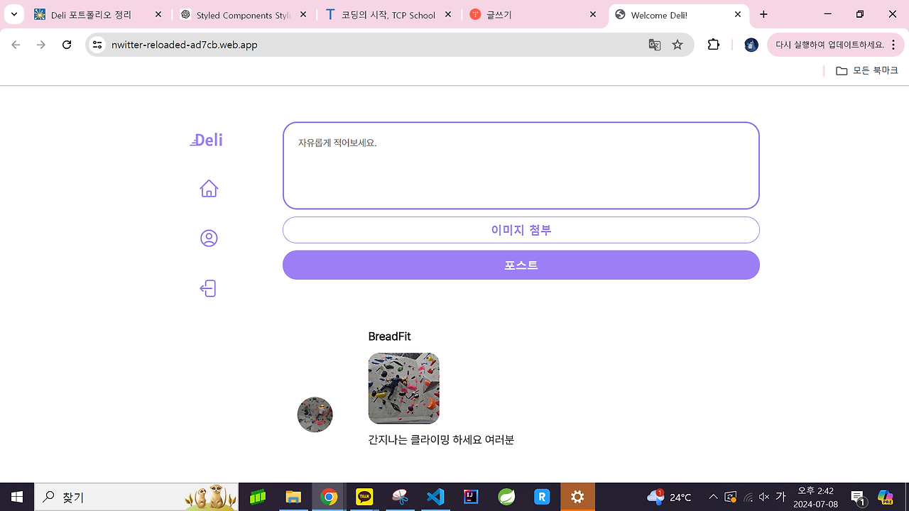 트위터 클론 ‘Deli’ 회고 — React + Firebase (1. 어떤 웹사이트야?)